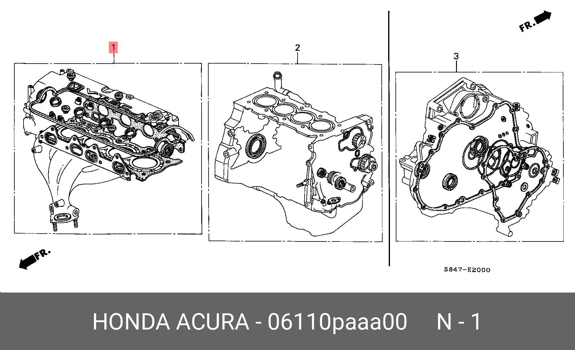 06110PAAA00 HONDA Комплект прокладок, головка цилиндра