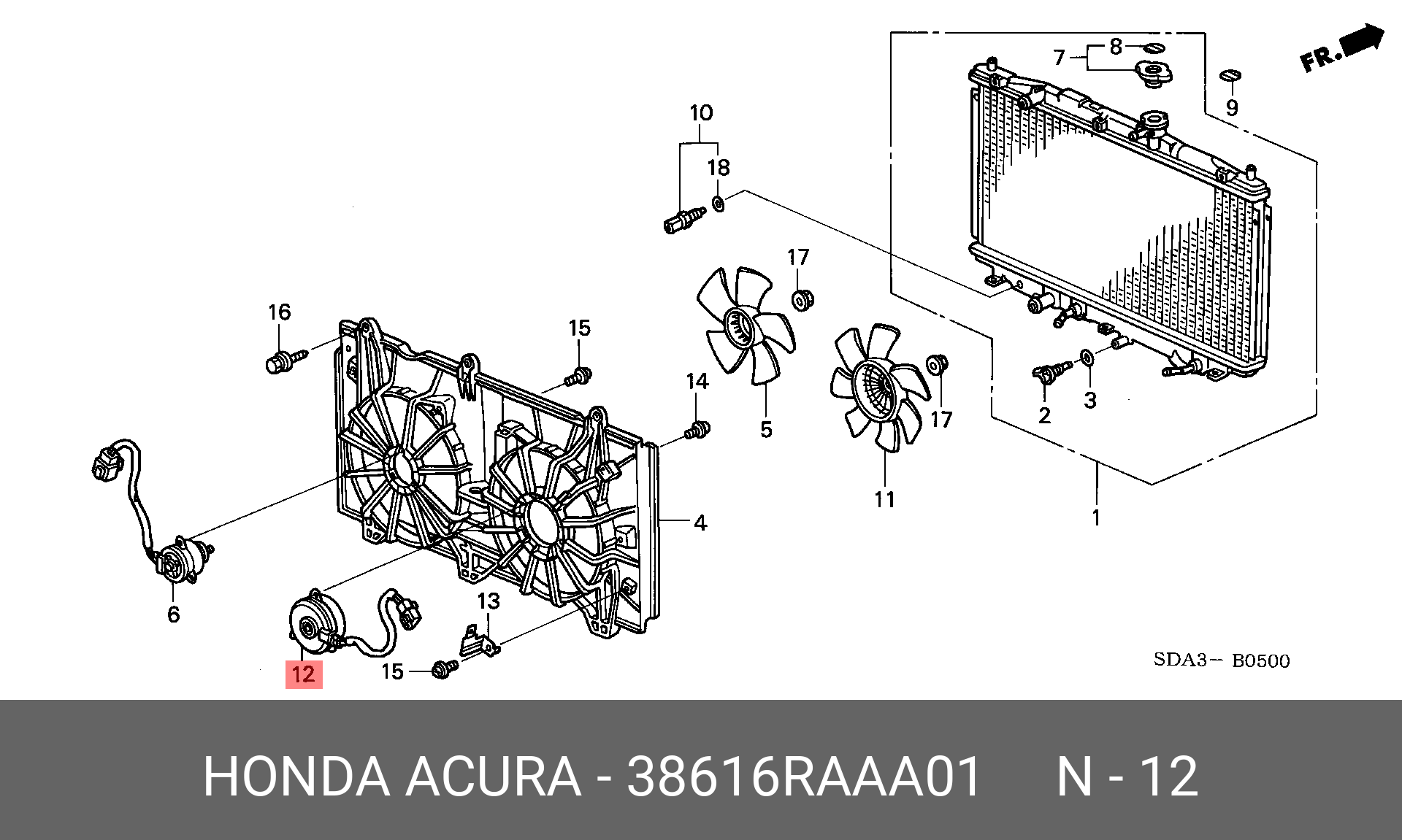 38616RAAA01 HONDA Вентилятор, охлаждение двигателя
