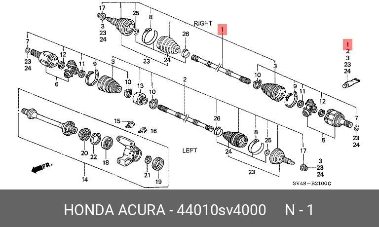 44010SV4000 HONDA Шарнирный комплект, приводной вал